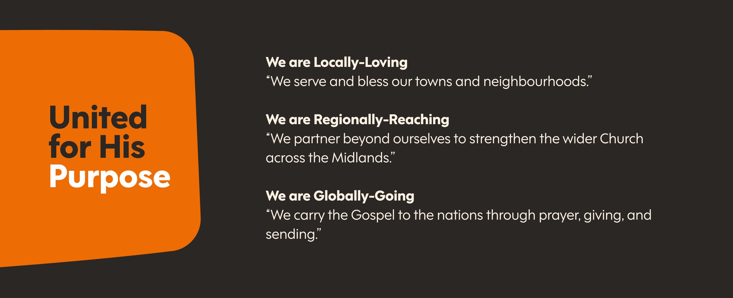 With two locations, we are committed to having a regional impact, serving the community across the Midlands. We continue to seek for opportunities to plant new churches in the years to come.